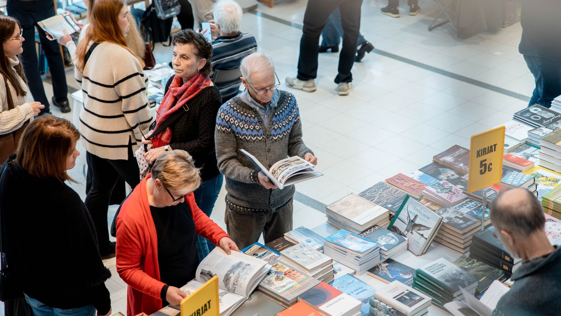 Mukana on noin sata näytteilleasettajaa. Sorsapuistosalin jättikirjakaupasta ja teemallisilta osastoilta löytyy koko suvulle joululahjakirjat – ja messupäivän lomassa voit nauttia kirjallisesta tunnelmasta kahviloissa ja Tampere-talon ravintoloissa.
